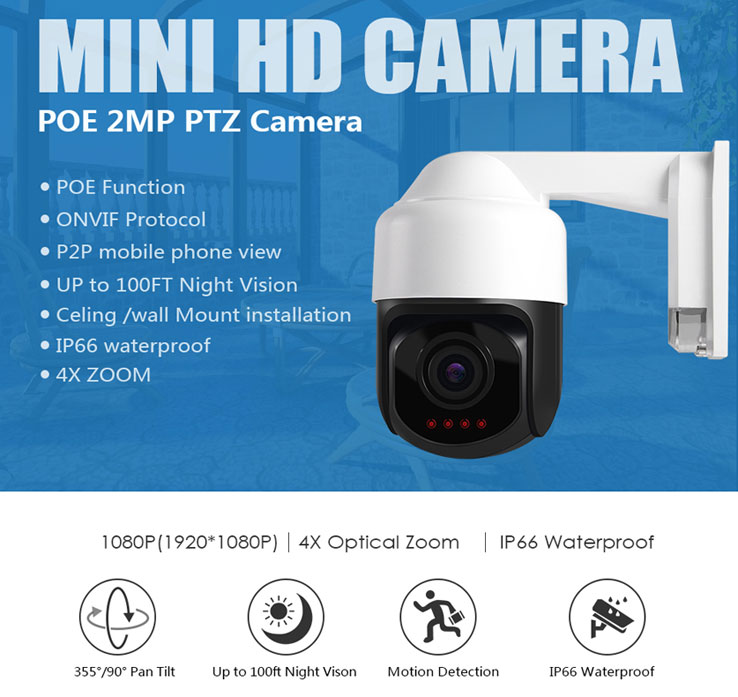 - 1080P PTZ IP Camera POE 2MP Mini 3 inch Dome Camera HD Infrared Waterproof Camera