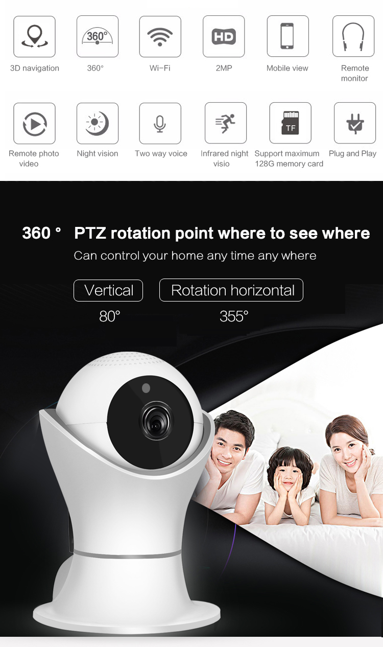 1080P Wifi IP Camera Fisheye 360 Degree CCTV Security Surveillance Camera 2MP Indoor Night Vision CCTV Camera Baby Monitor