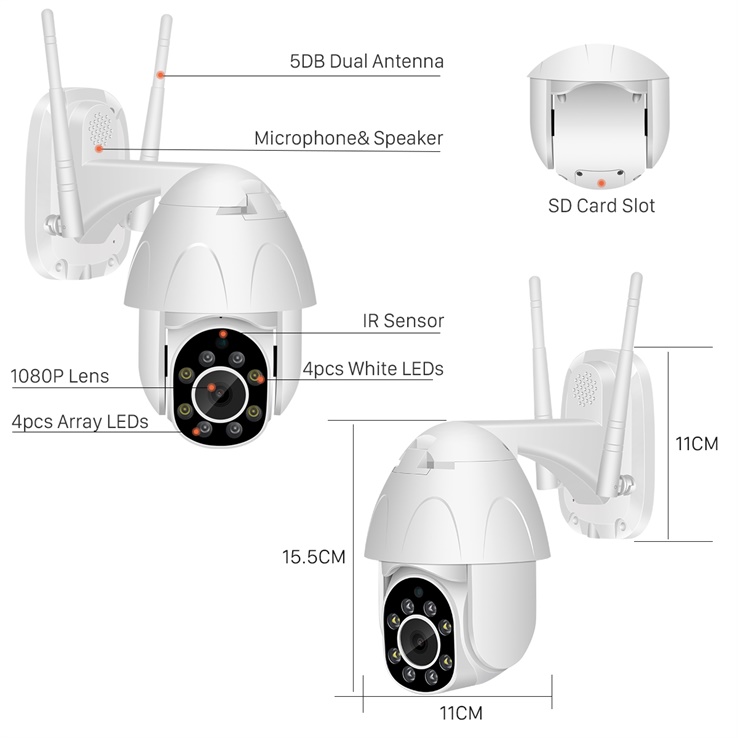 Outdoor IP PTZ Camera 1080P Full HD Wifi Dome IR Night Vision 4X Zoom Waterproof CCTV Security Video Surveillance Camera