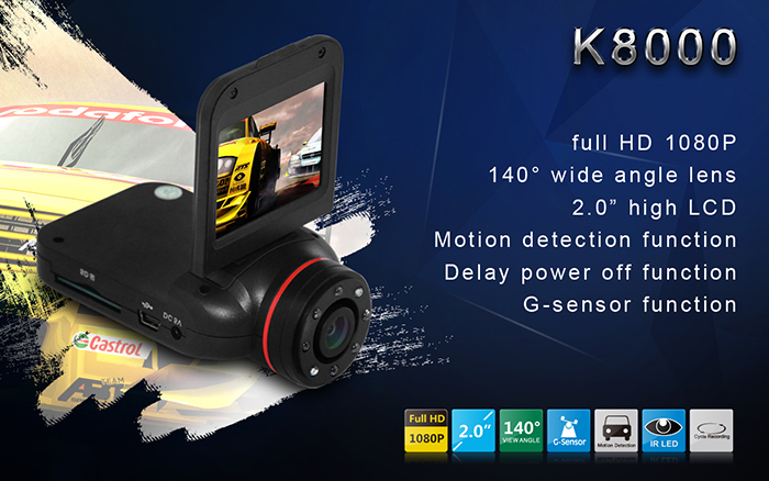 2.0" LCD HD1080P Vehicle Black Box DVR Camera Video Recorder with Motion Detection, Loop-Cycle Recording & HDMI Video Output (Black)
