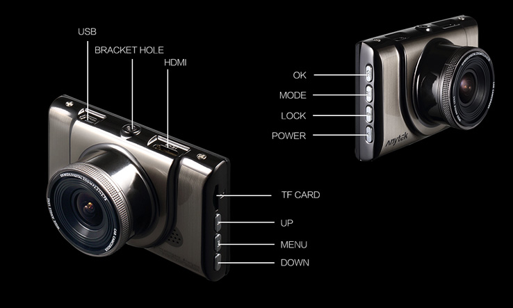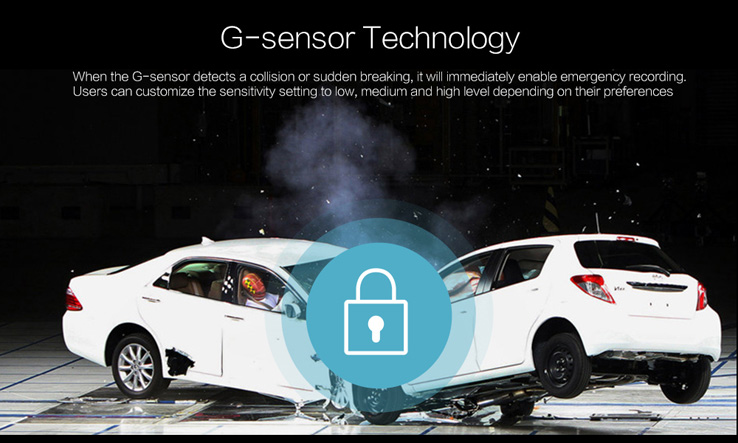 G-Sensor: WDR, H.264 compress format ,G-Sensor,Cycle-Recording ,Safe distance remind