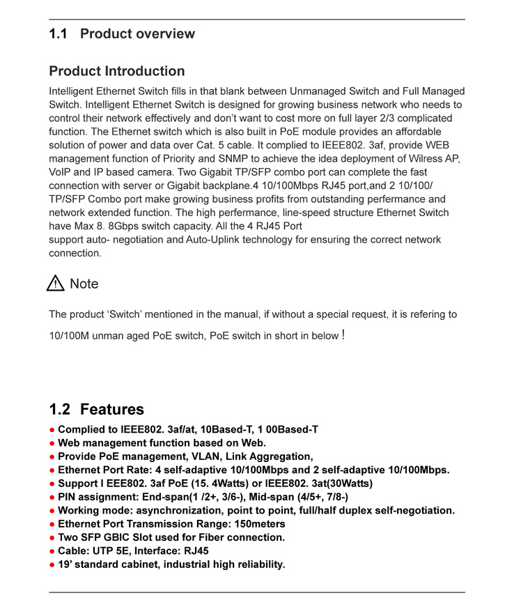 6. Follow IEEE802.3,IEEE802.3U/IEEE802.3AF/IEEE802.3AT standard
