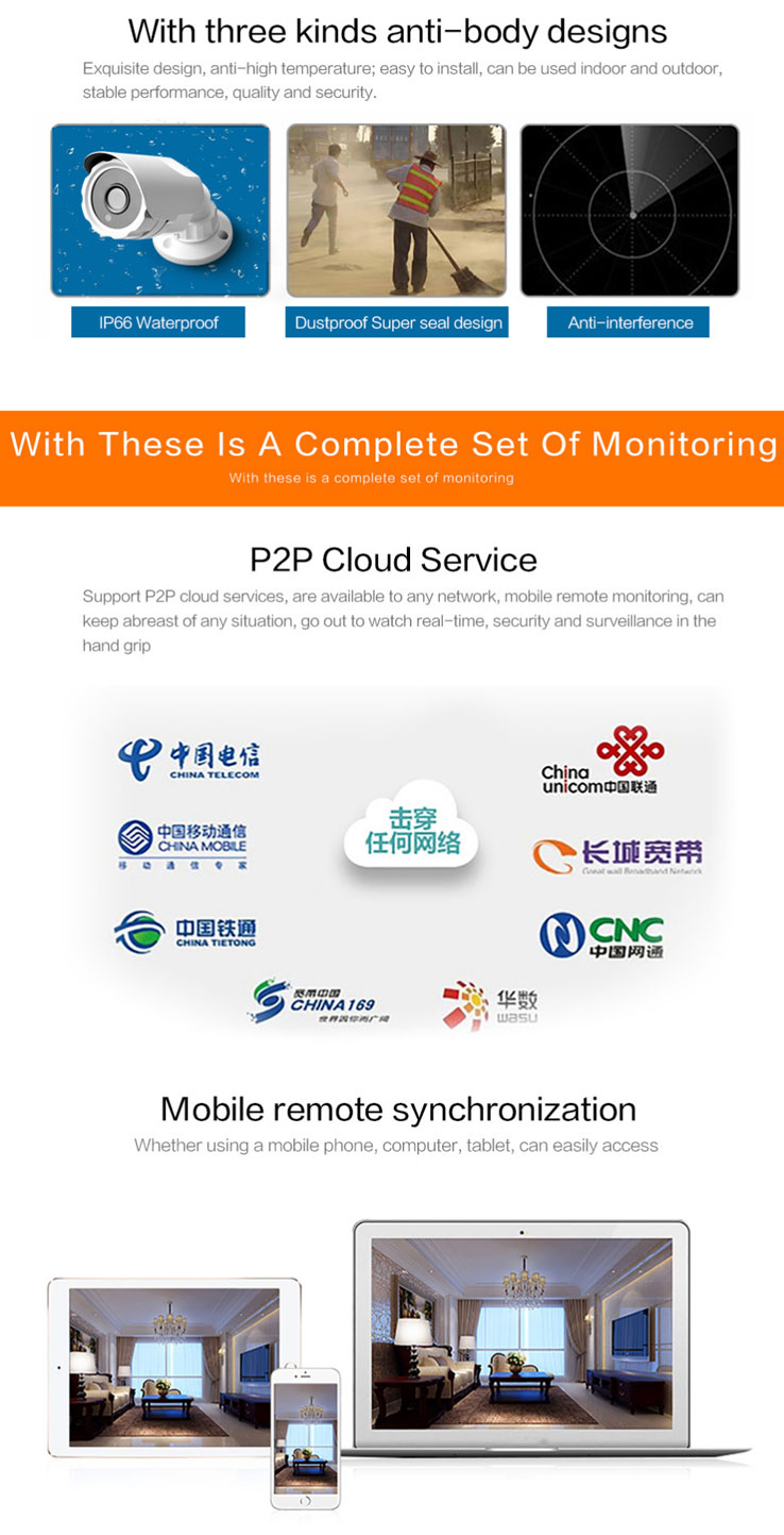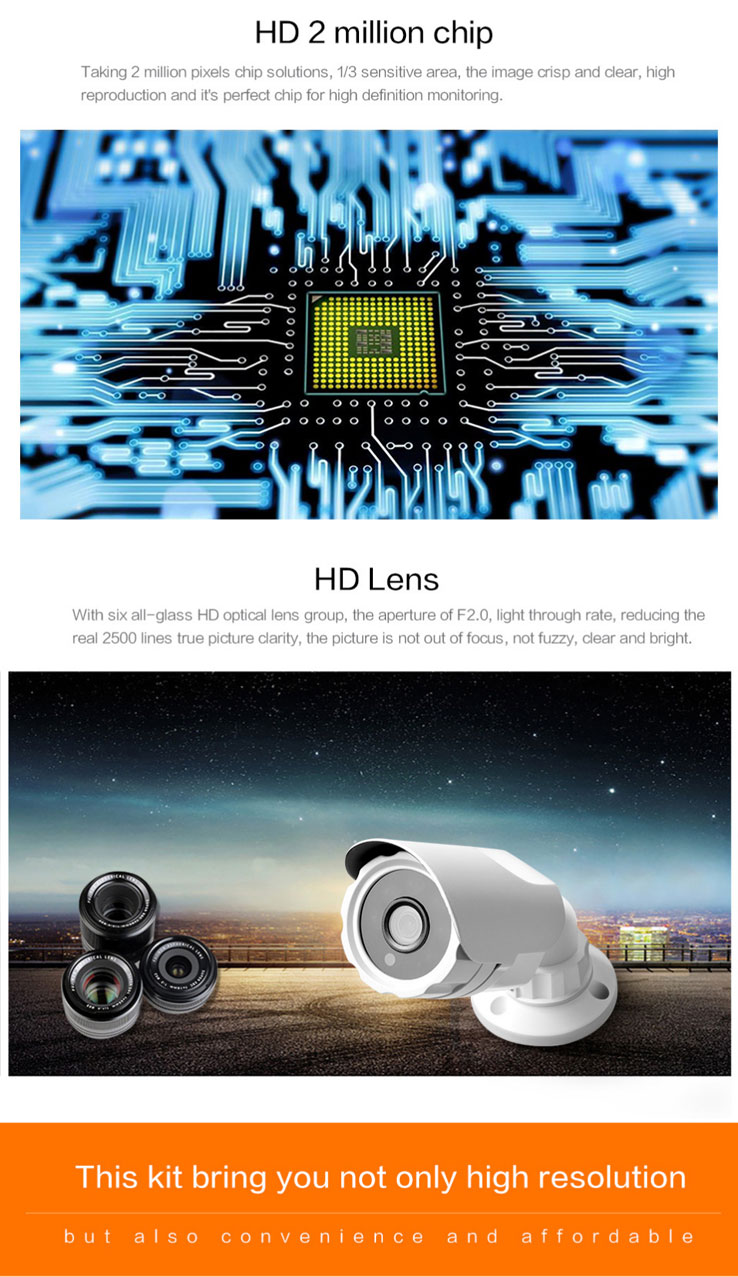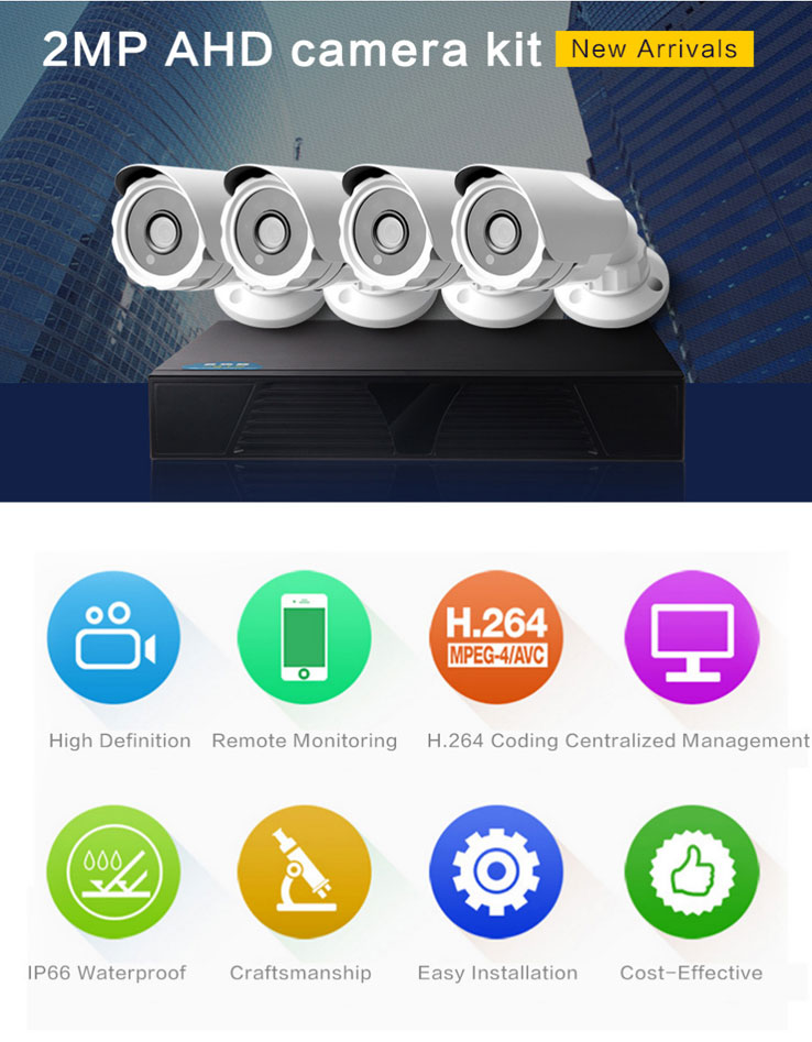 4PCS 1080P Camera Whit 4CH AHD Analog Recording Alarm DVR Kit Waterproof IP DVR AHD System