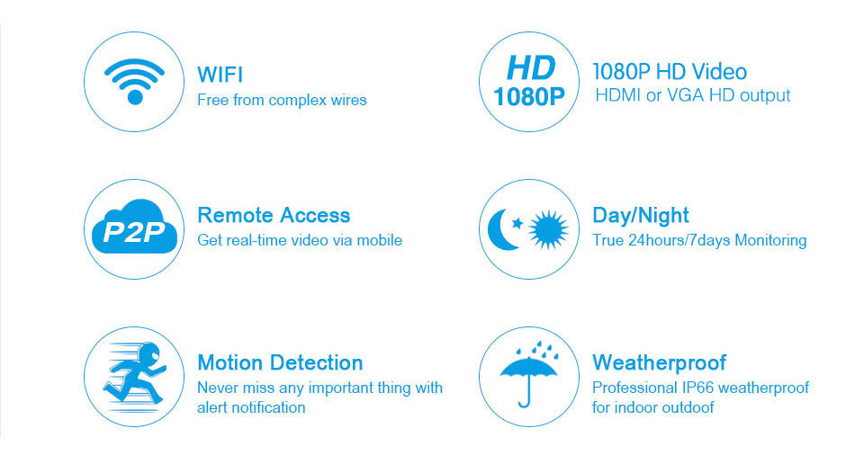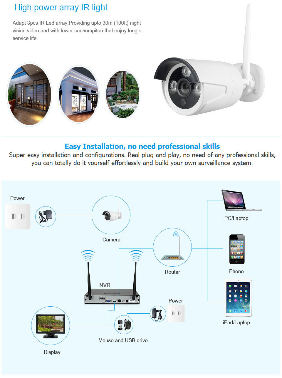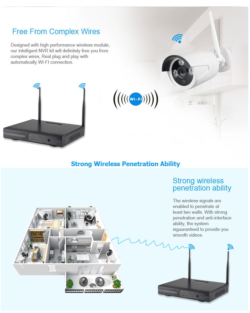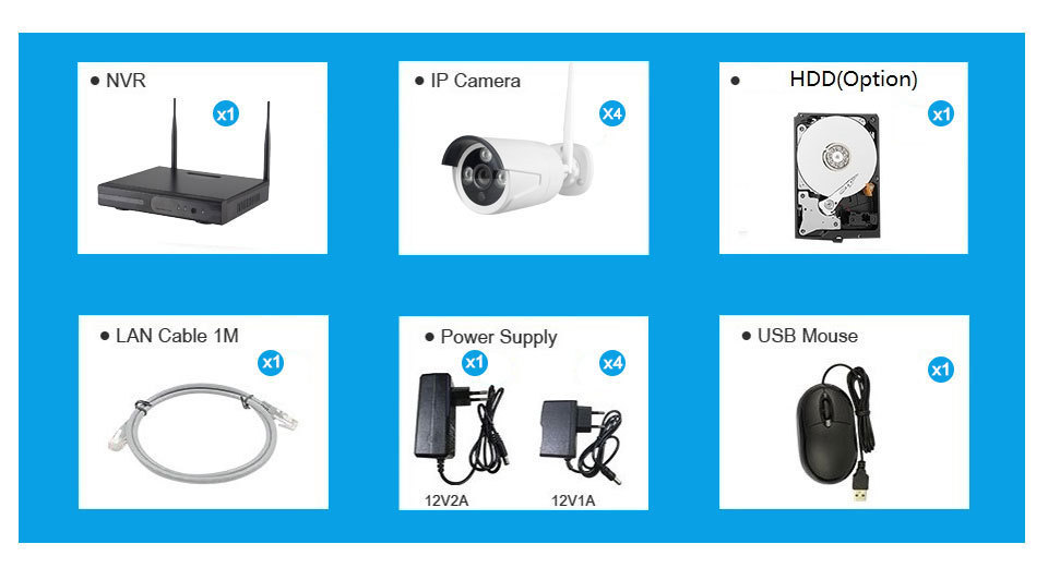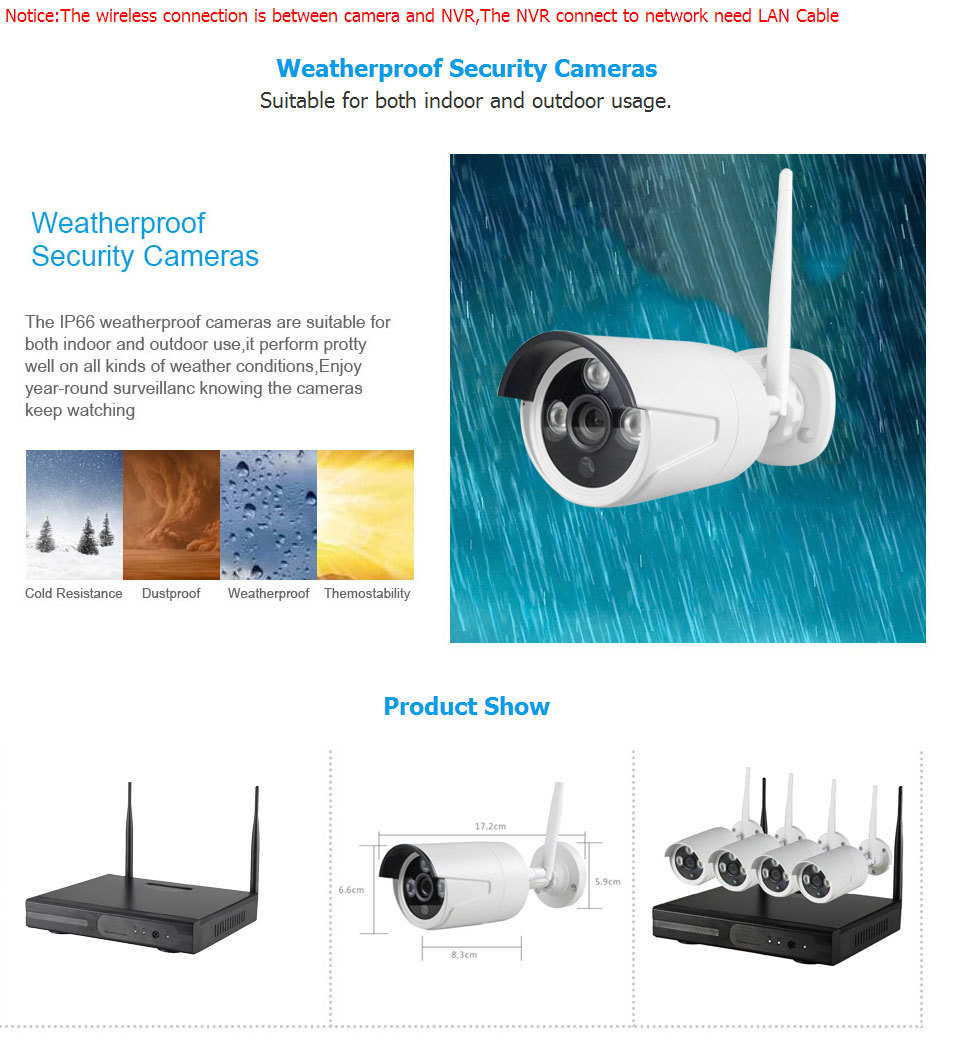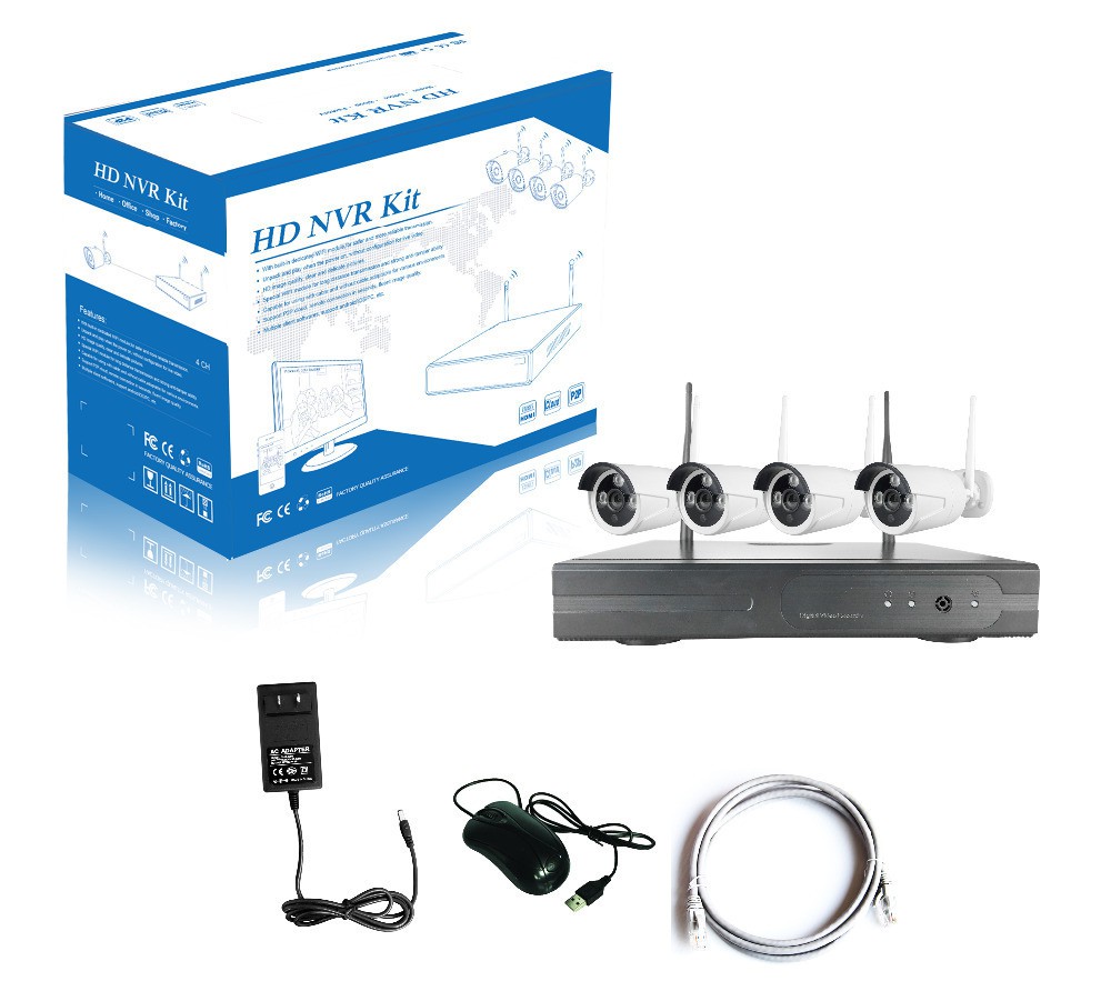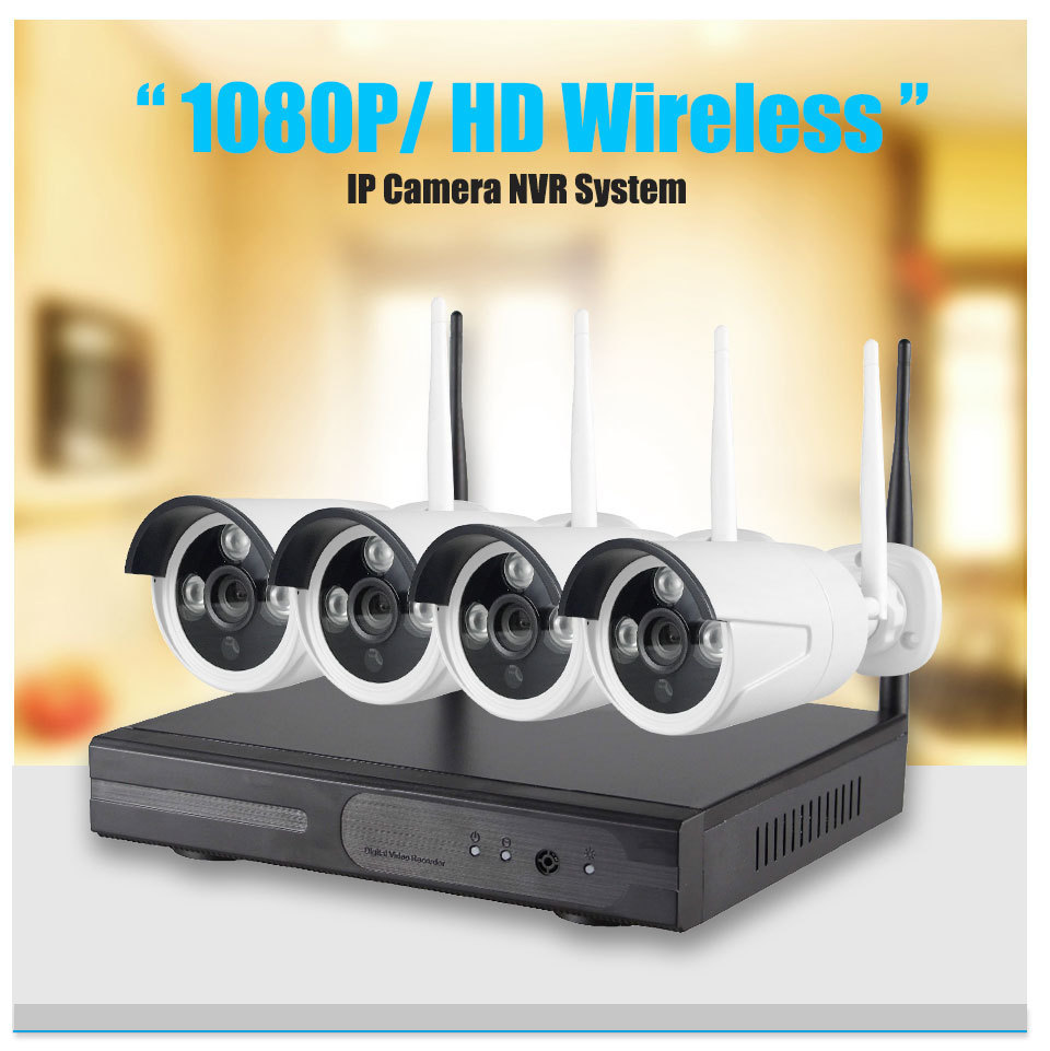 - 4PCS 1080P Wireless Outdoor IP Camera System Nightvision 4CH Security 1080P HD Network Wifi NVR Kit Smartphone View