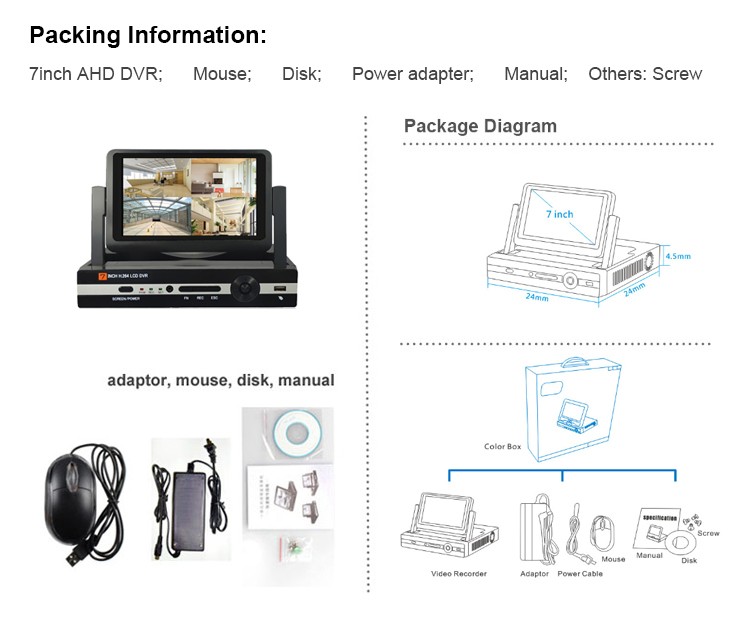 DC AHD DVR security system is special designed with 7.1" LCD monitor to realize review your footage easily on the built-in monitor which saves you huge cost for a separate monitor,Instant email alerts only when motion is detected, catching every essential moment, save hard drive record storage