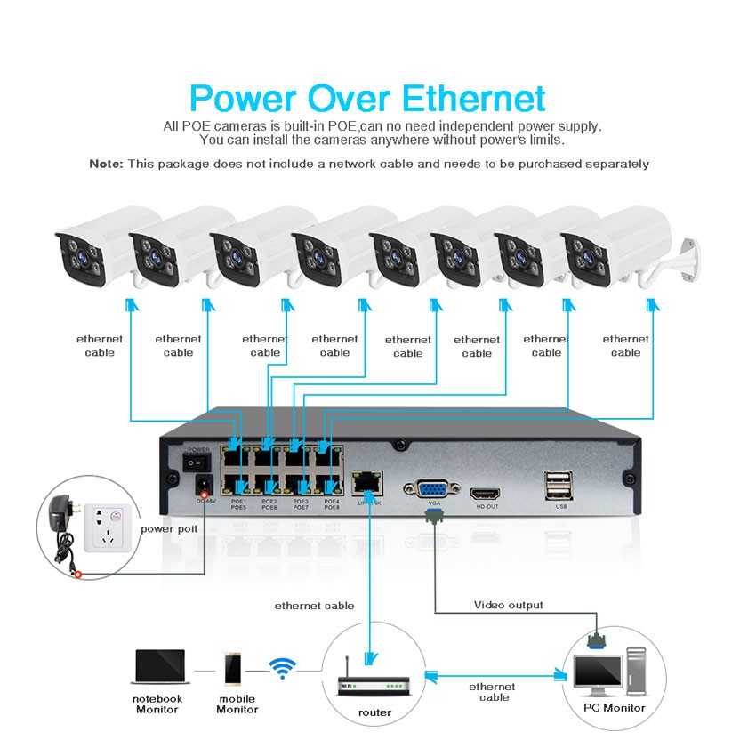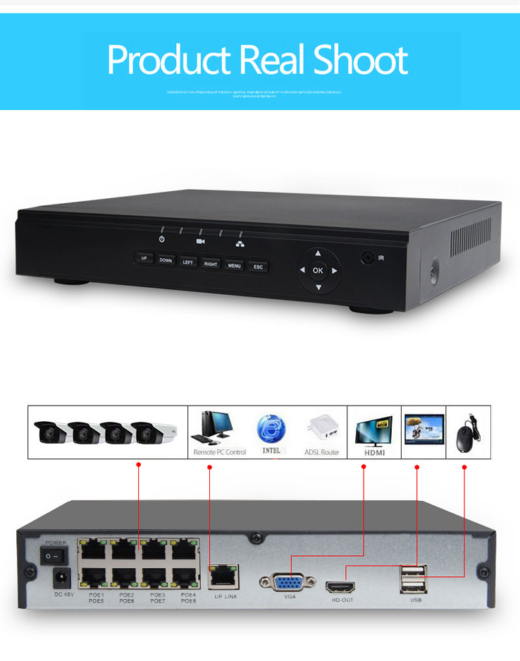 NVR POE 8CH IP NVR HD 1080P Network Video Recorder Security Camera System Cmdsmart