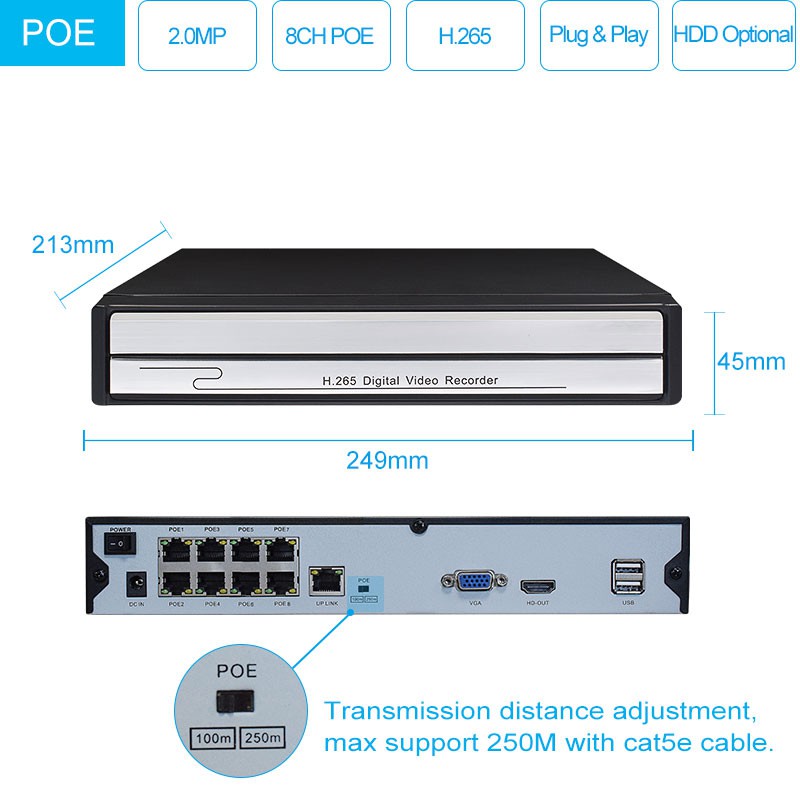 *1 X 1080P 48V 8CH POE NVR