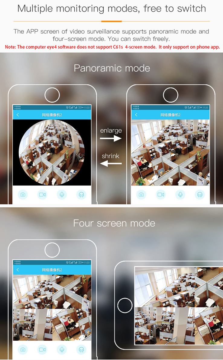 Mini Wifi Camera 360 Degree Panoramic Camera HD Night Vision Support SD Card Indoor Switch Remote Camera