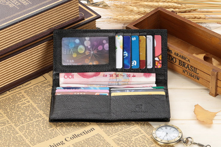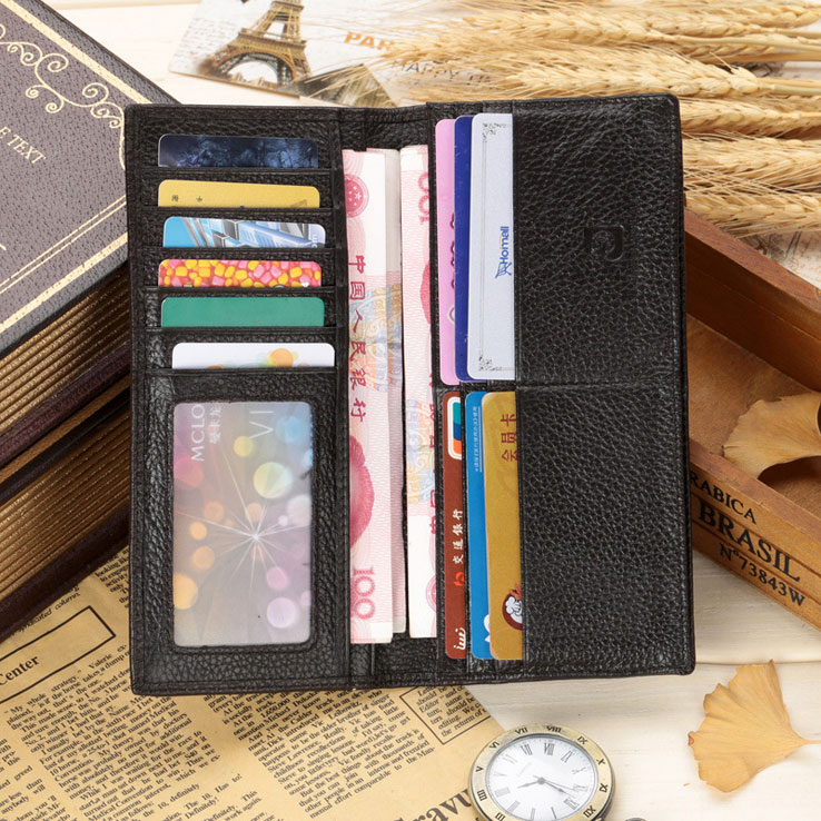 leather with PU wallet brand turning slender men's wallets long thin Korea walet purse wallet id window