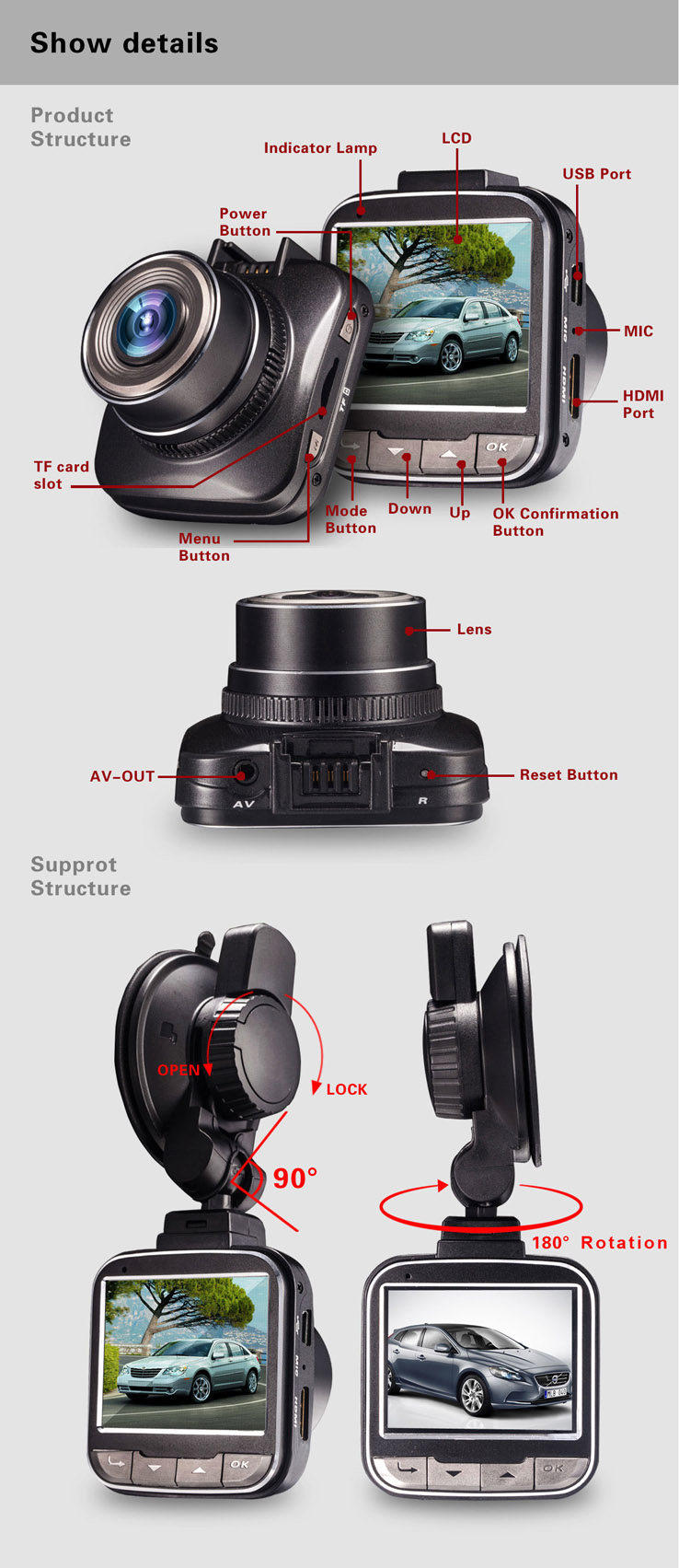 - FULL HD 1080P Vehicle Black Box with Motion Detection, Loop Recording, 4X Digital Zoom & G-sensor (Black)