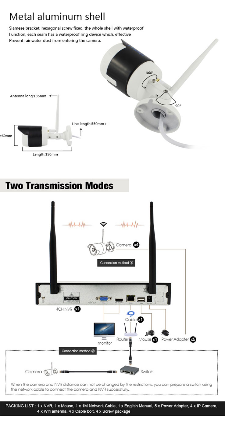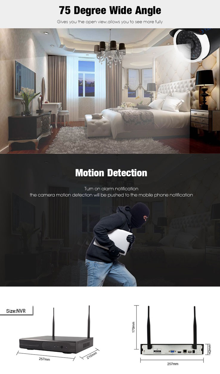 - The camera is communicated with the NVR by their antennas to transmit data