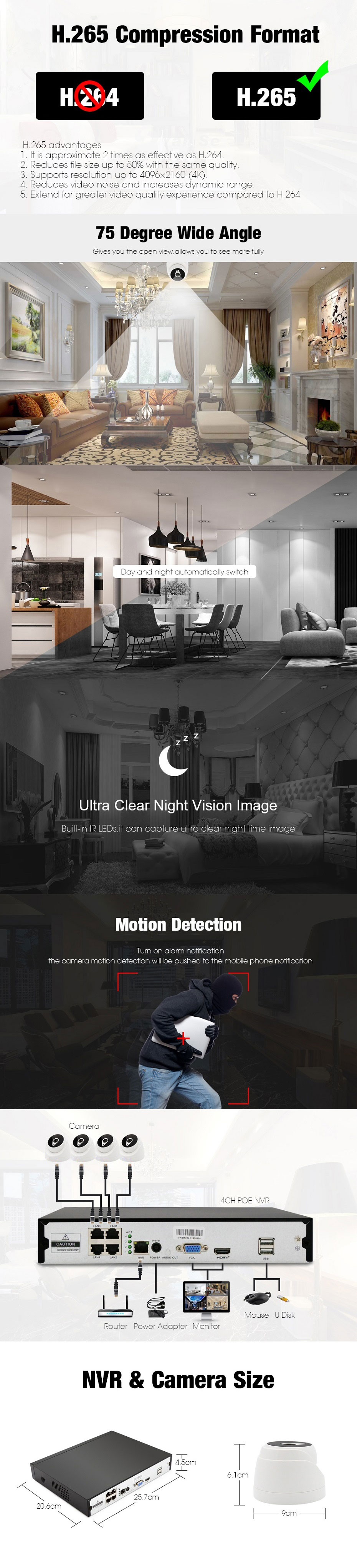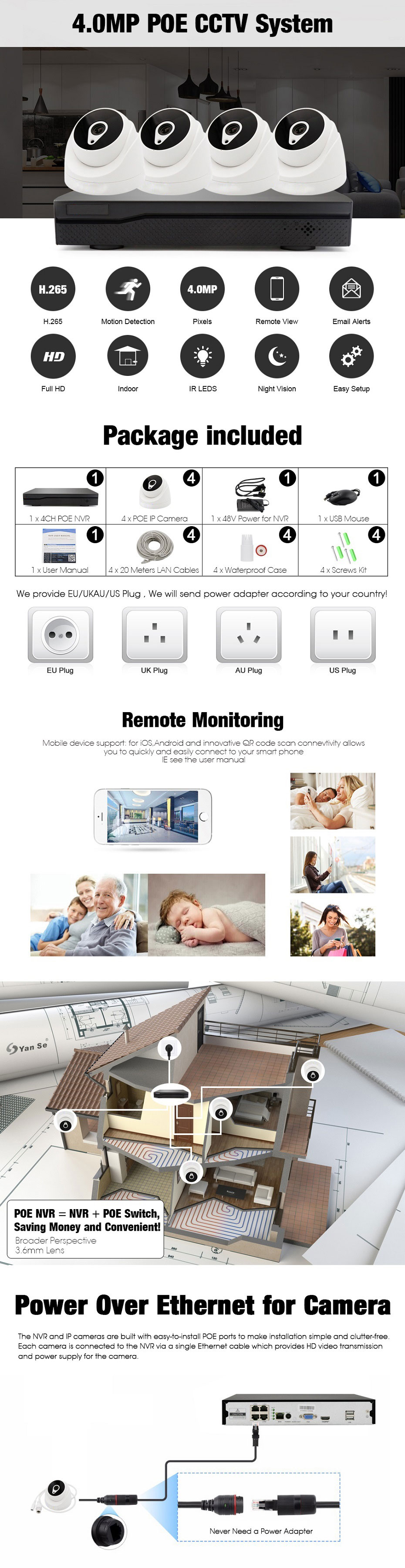 H.265 4Channel POE NVR Kits 4pcs 4.0MP IP Camera Dome CCTV Security Video Surveillance System