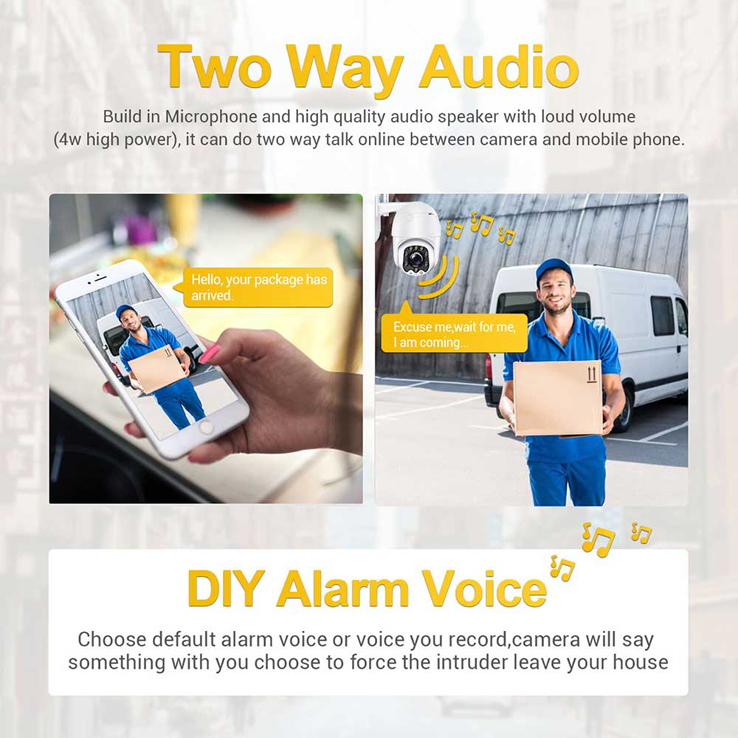 Wifi HD ptz ip camera Pan/Tilt AI Humanoid detection H265 Waterproof WiFi IP Camera with Two Way Audio