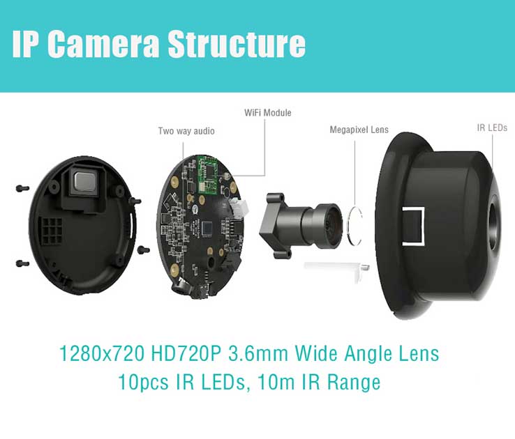 1 x IP Camera,1 x Charger,1 x USB Cable,1 x User's manual,1xScrew