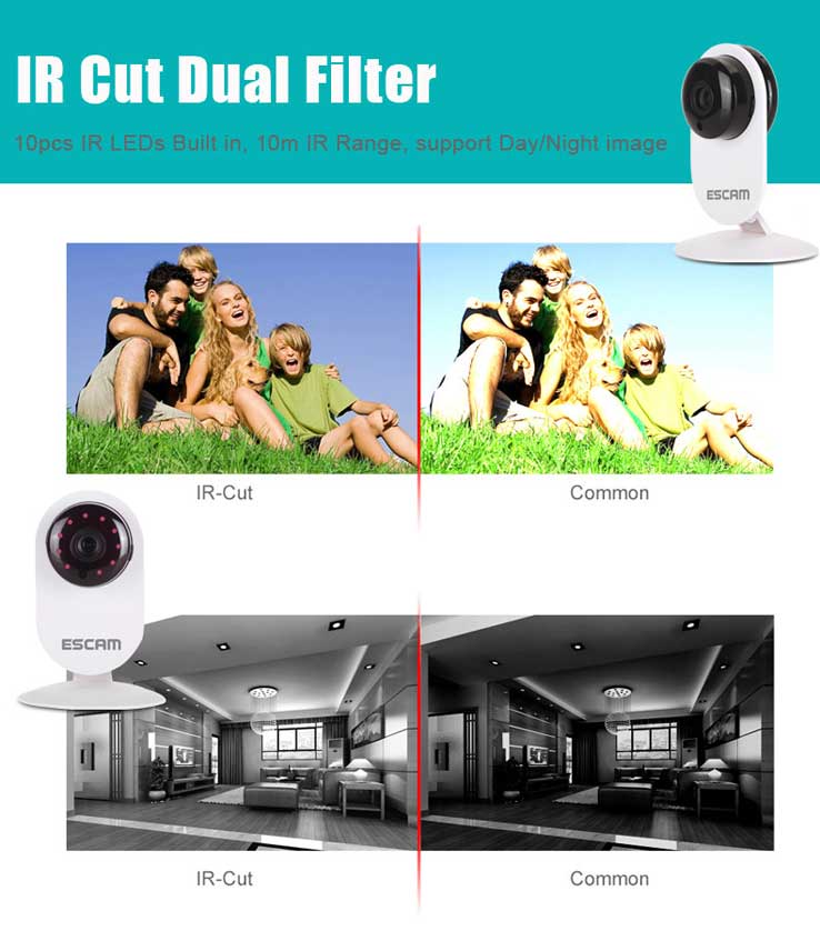 Dual IR-CUT Filter auto switch, 10pcs 950nmΦ10mm LED,3-10m IR distance