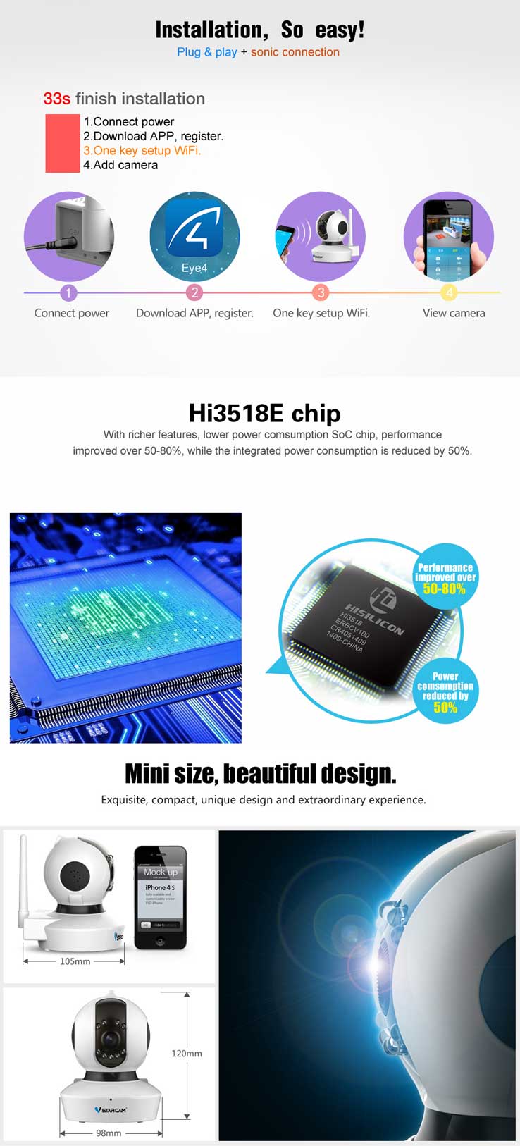 Hisilicon processor,built-in ARM926 @Max. 440MHz and a high-speed video co-processor. |