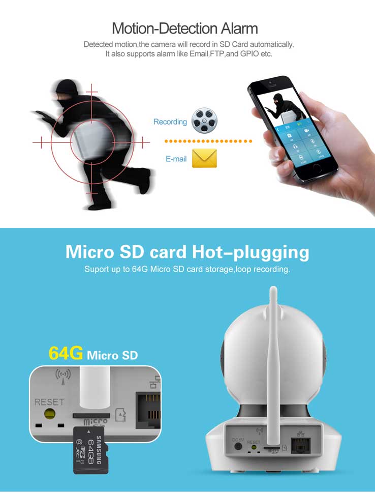 - HOT WiFi IR NVG ONVIF P2P Pan/Tilt HD Home phone Security Network IP Camera