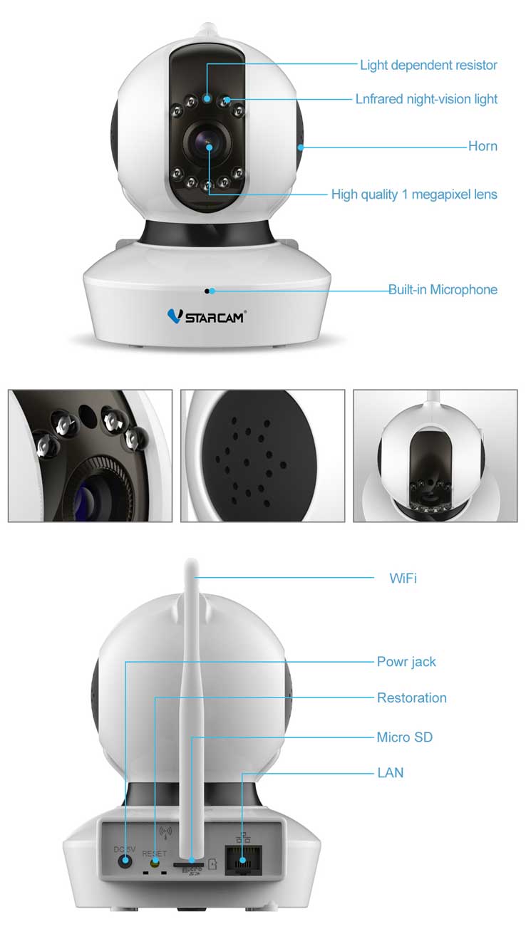 Dual IR-CUT filter auto switch, 9pcs 850nmΦ5mmLED,10mIR distance |
