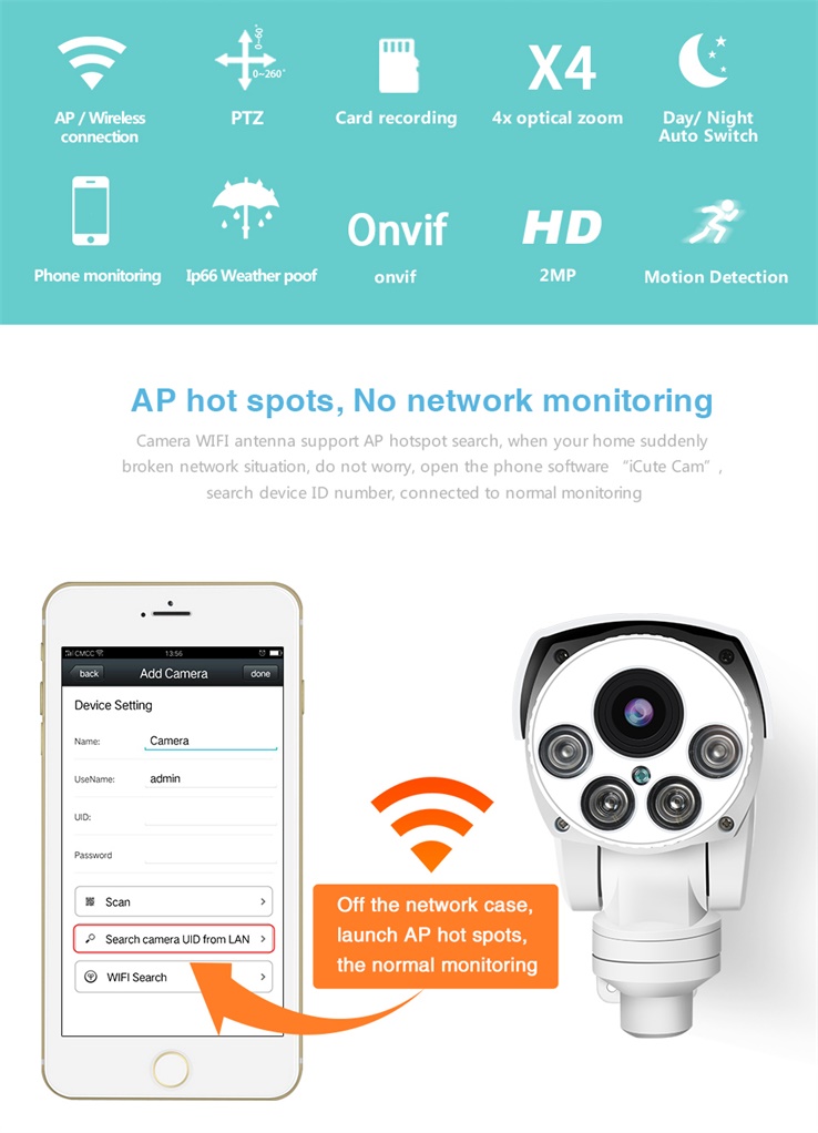 1/4 Inch CMOS Sensor Outdoor Waterproof Wireless Network Camera (Silver)
