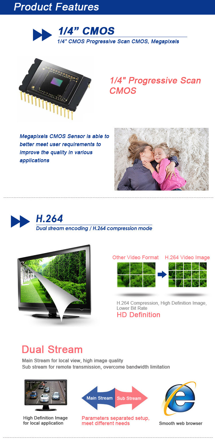 TCP/IP , UDP , RTP , RTSP , RTCP , HTTP , DNS , DDNS , DHCP , NTP ,SMTP , UPNP |