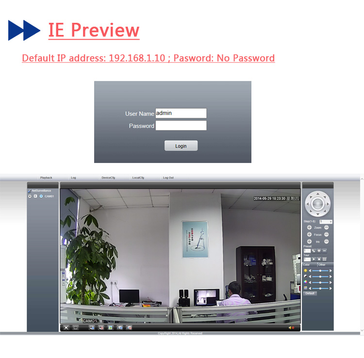 Color: 0. 1Lux, B/W: 0.01Lux ; 0Lux(IR on) |