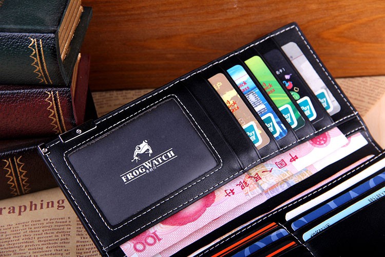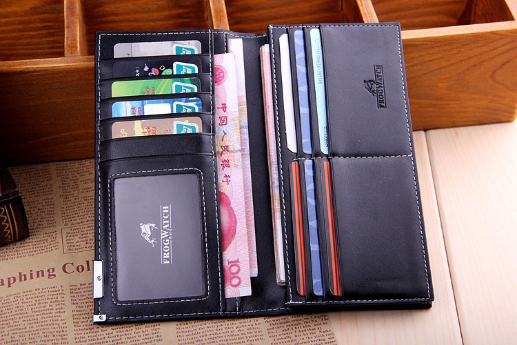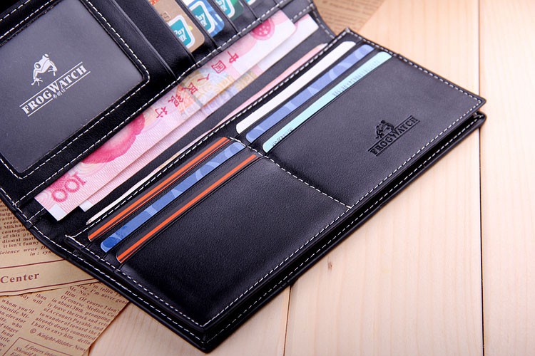 leather with PU wallet brand turning slender men's wallets long thin Korea walet purse wallet id window