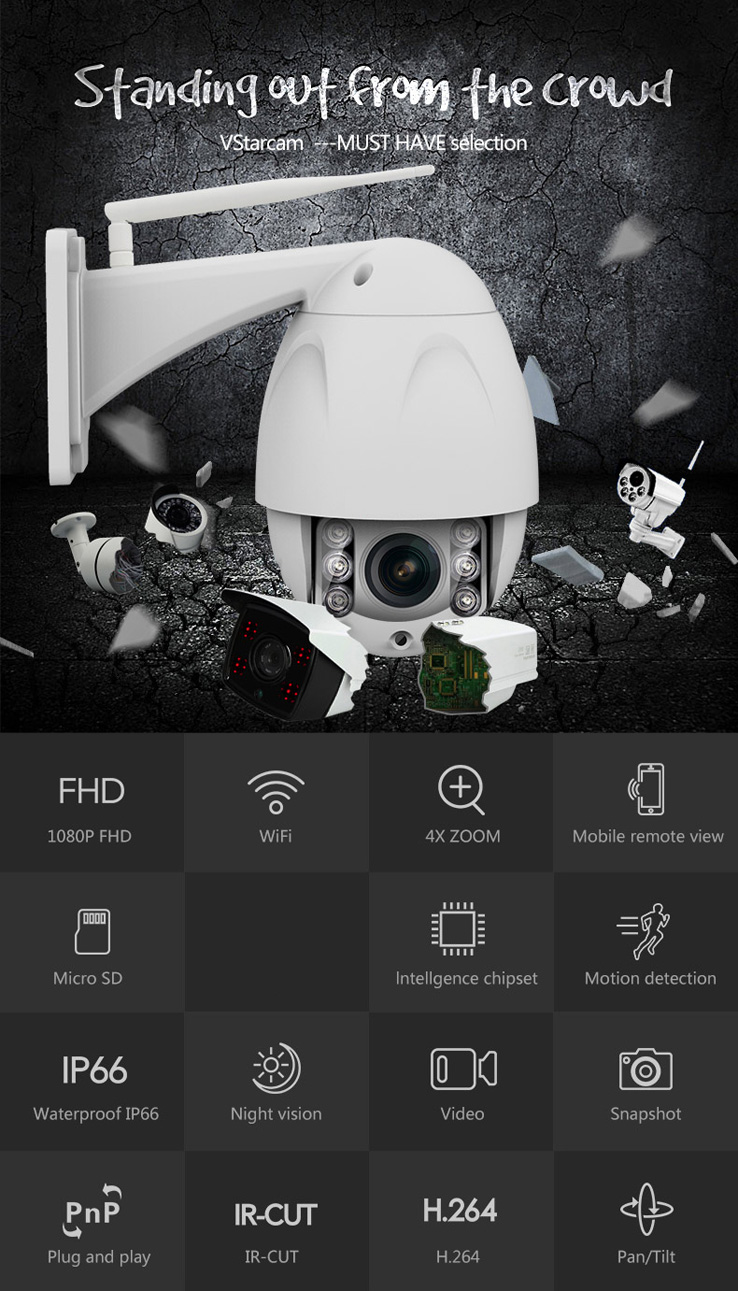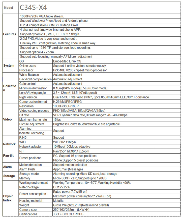 1080P 4X zooming FHD IP camera, mobile remotely view, zoom in and zoom out freely .