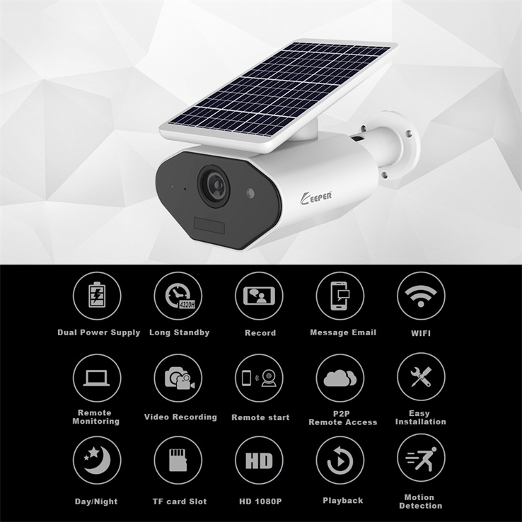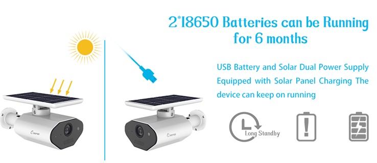 - Outdoor Solar Powered Security Camera Low Power Wireless WiFi Camera HD IP66 Waterproof Night Vision Camera