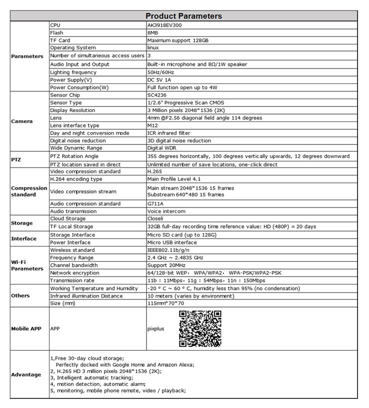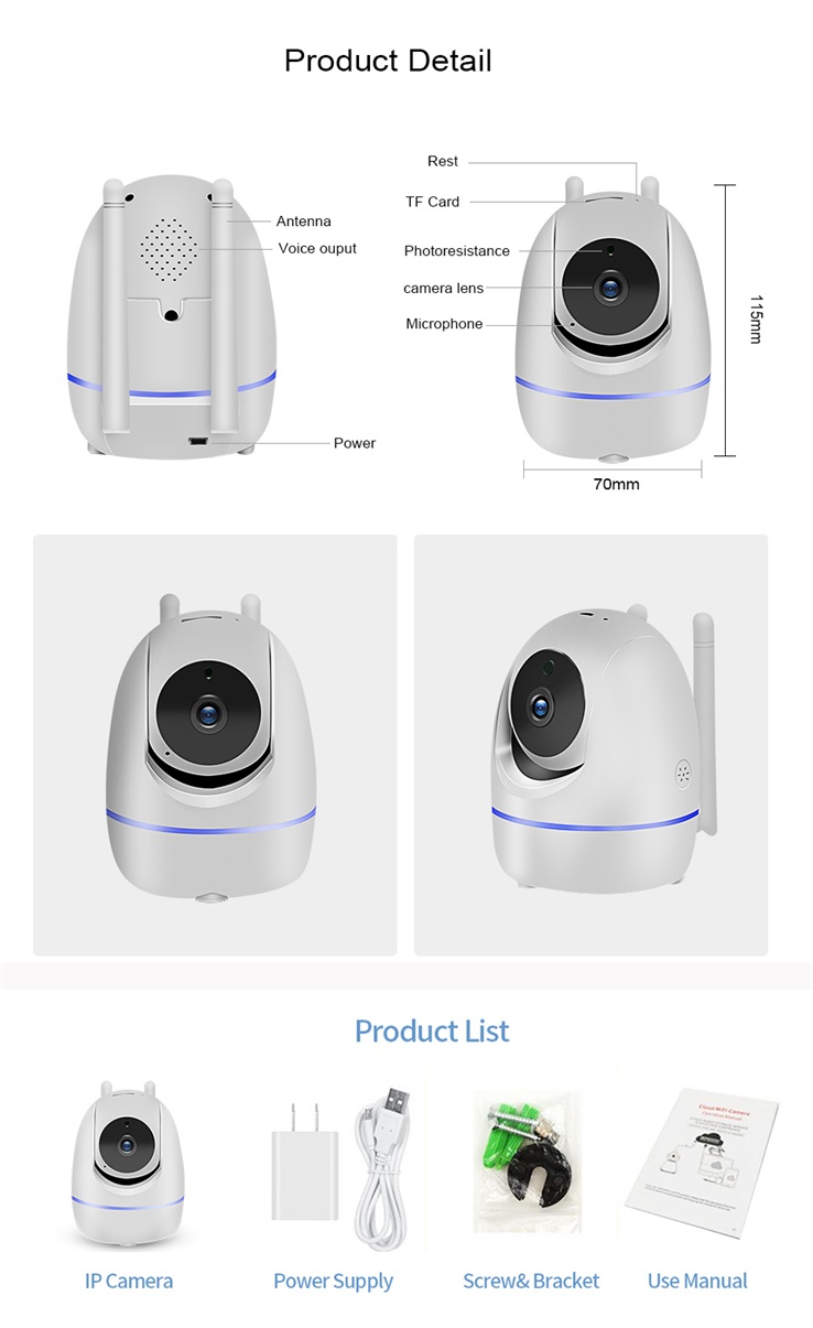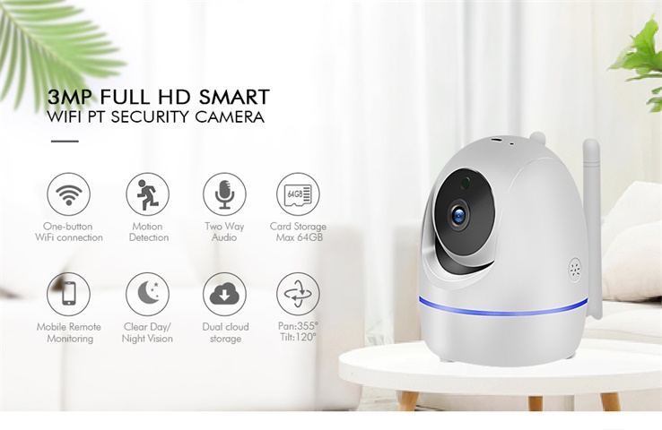 HD 1080P Smart WiFi IP Camera captures exceptionally crisp 3.0MP HD images, sharper and clearer than those of 1080 2P WiFi cameras.