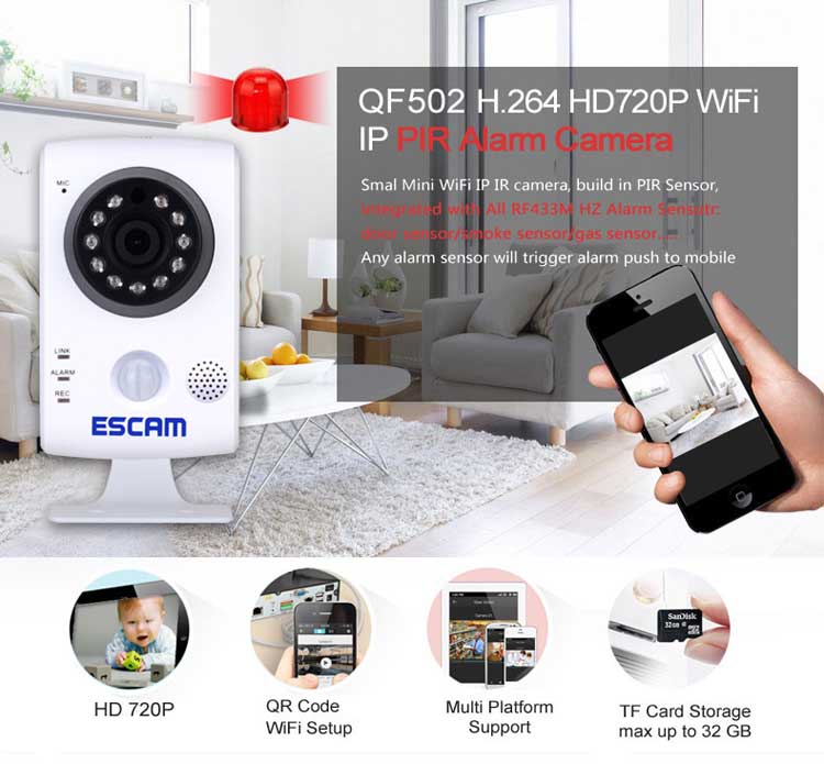 QF502 WiFi 1.0MP IP PIR Alarm Camera 720P Motion Detection Security