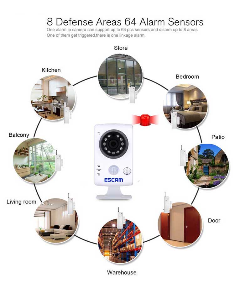 ● Integrated with all RF433MHz alarm sensor, door / smoke / gas sensor