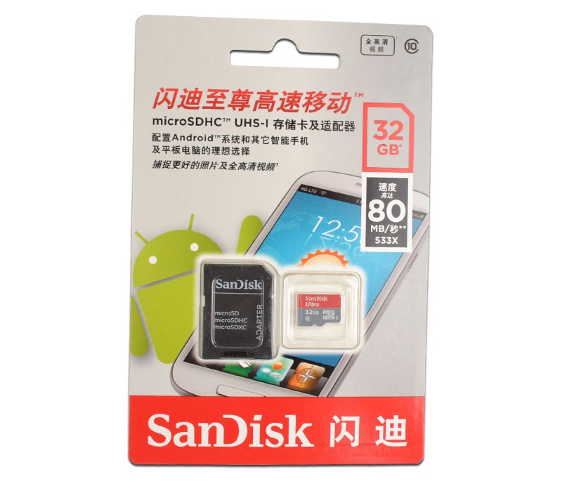 - Sandisk Class 10 80MB/S High Speed 32GB Micro SD TF Card with Adaptor