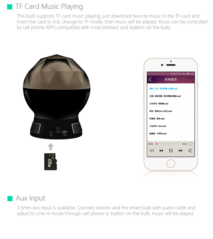 Support up to 64G TF card MP3, WMA, WAV format music player