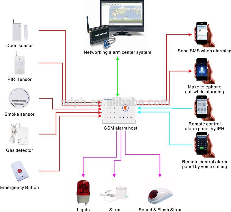 PH-G2 comes with 24 wireless alarm zones, 6 fire alarm zones and 2 wired alarm zones, user ca add additional sensors to each of these zones as their mind. It is able to program 20 remote controllers or panic buttons for the necessary.