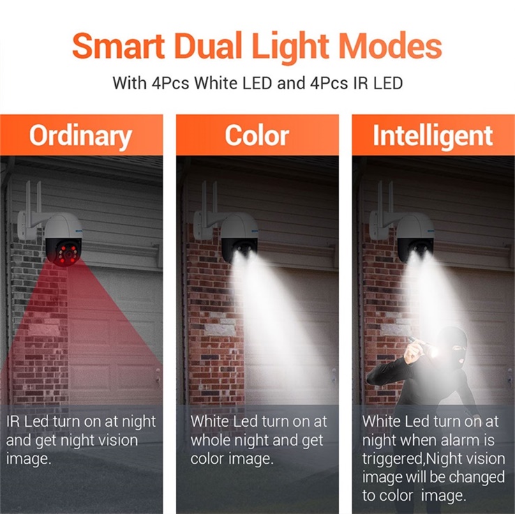 3.Smart Dual Light Modes,IR distance is up to 20m