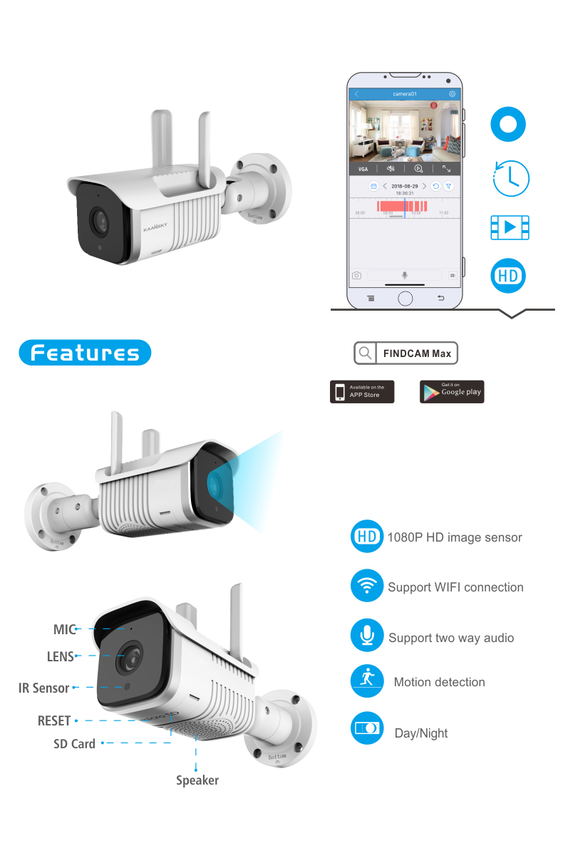 Full HD 1080P image sensor,surely enjoy high resolution image quality for your home security.Wherever you are,can monitor what happens at your home anytime or anywhere